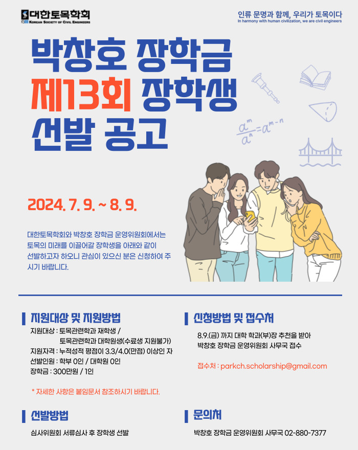 장학 [8/6(화)까지] 박창호 장학금 제 13회 장학생 선발 공고